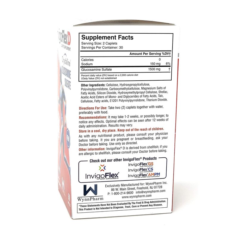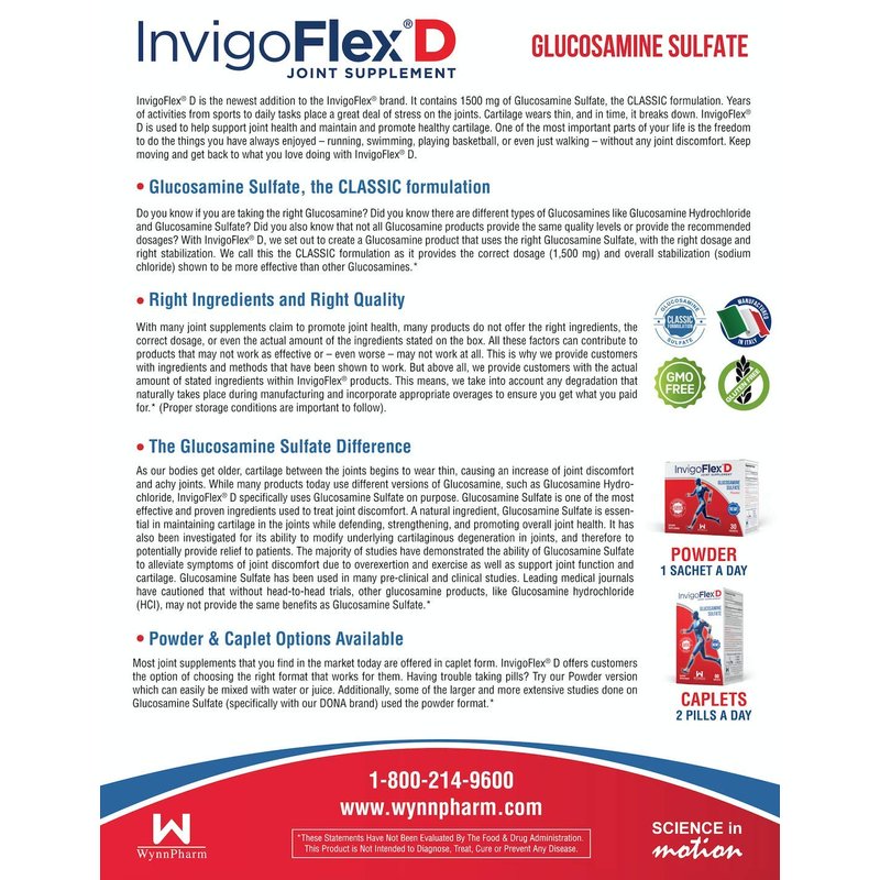 INVIGOFLEX® D - 1500mg of Glucosamine Sulfate (Classic Formulation) - Premium Joint Supplement for Knees, Hands, Back, & Hip Support D: Glucosamine Sulfate, Caplets - 60 Ct