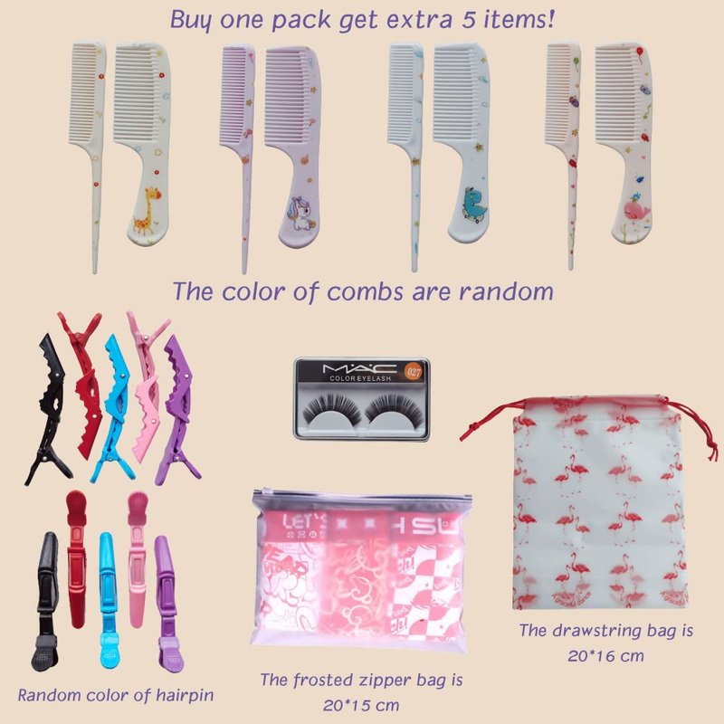 - [Package Include]: Buy One Get 6 Items: 1 Piece Wire Hair Extension, A Pair of Combs(A Large Toothed Comb and A Pointed Tail Comb), A Hairpin, A Pair of Eyelashes, A Beautiful Drawstring Bag and A Frosted Zipper Bag