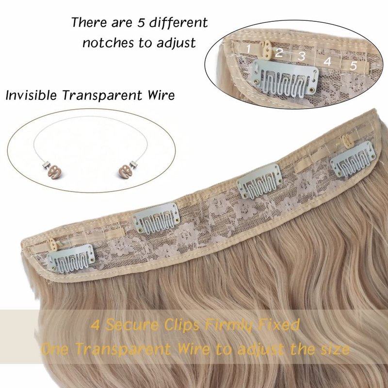 - [Secure Fit]: There Are 4 Secure Clips Around The Inside of The Hair Extension. The Invisible Wire is Adjustable, There Are 5 Notches on Both Sides of The Extension to Adjust Different Size to Fit Your Head by Change The Invisible Wire Position