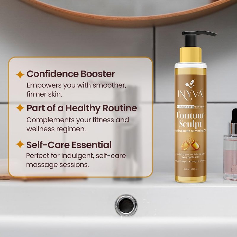 - Combat Cellulite Naturally: INYVA ContourSculpt is expertly formulated with a blend of Natural Omega 3, 6, and Vitamin E to target and reduce the appearance of cellulite, promoting smoother, firmer skin.