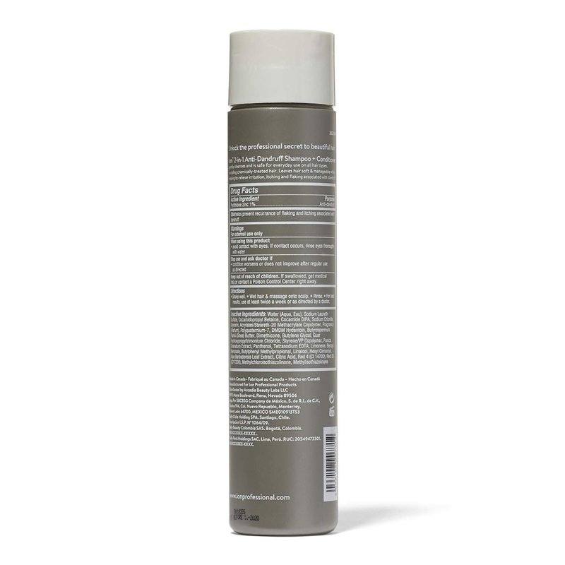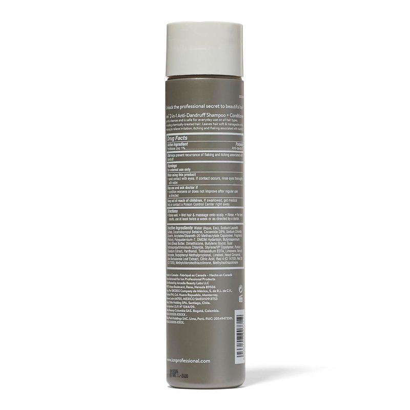 ion 2-in-1 Anti-Dandruff Shampoo and Conditioner contains 1% Pyrithione Zinc along with Pomegranate Extract to provide dandruff control. The gentle cleansing formula is safe for everyday use on all hair types including chemically-treated hair. Leaves hair soft and manageable while helping relieve irritation itching and flaking associated with dandruff. From volumizing to smoothing moisturizing to color-protecting Ion shampoos conditioners and treatments are formulated to provide impeccable professional results for all hair types.