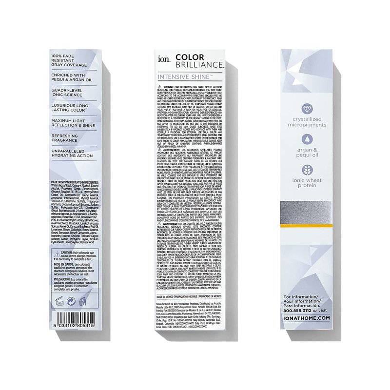 The line professional stylists have trusted for years. ion Color Brilliance Permanent Hair Color makes it easy to get extraordinary, long-lasting, salon quality results at home. The luxurious Italian formulas are made to be especially gentle and protect against damage. The Color Brilliance Permanent Liquid Hair Color pallet consists of luxurious shades with advanced ionic technology that utilizes pure ionic micro pigments for deeper, more intense color deposit. Ionic wheat germ protein, nourishing botanical extracts, and low ammonia help ion Color Brilliance penetrate the cuticle layer of the hair and lodge in the cortex, ensuring 100% flawless gray coverage. Superior quality and proprietary blends are formulated in Italy by ion's expert team of chemists to deliver unparalleled results. ion Hair Color science relies on the power of micro-pigmentation- ion's microscopic pigment molecules oxidize slower, allowing them to penetrate deep into the cortex of each hair strand for long-lasting, fade-resistant color. These formulas are PPD-free and enriched with Hyaluronic Acid, Argan Oil, Pequi Oil, and botanicals to nourish and strengthen hair from within. Not to mention, ion Hair Color is gentle on hair, containing up to 38% less ammonia than the leading professional brands on the market. Unlock your hair’s true potential with ion’s cutting-edge, salon-quality color science and bring home vibrance like never before.
