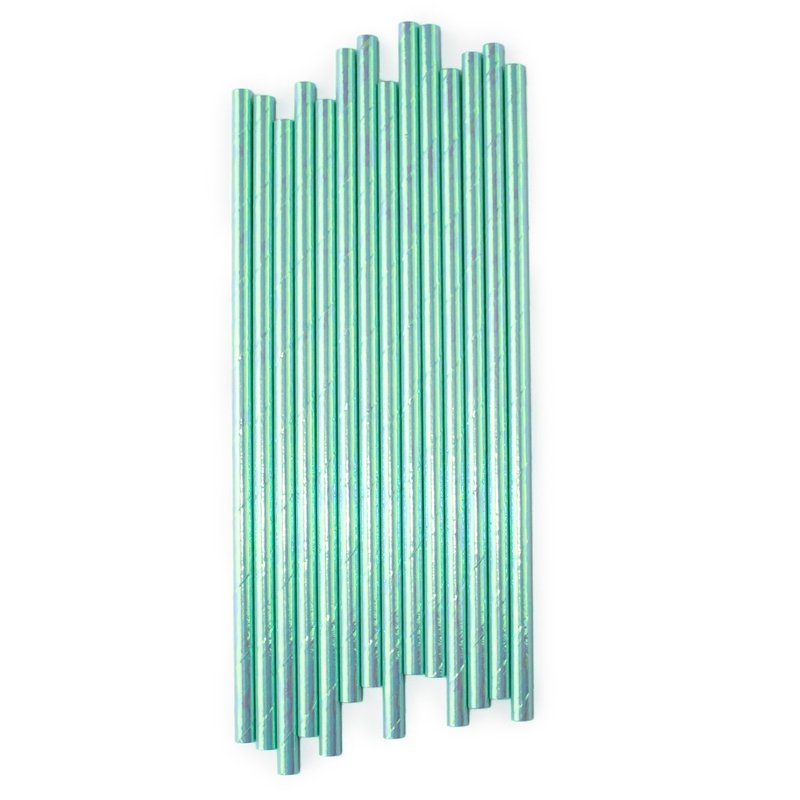Ipalmay Sparkle Foil Green Mermaid Cocktail Paper Straws, Disposable Biodegradable Drinking, 7.75 Inches, Pack of 100