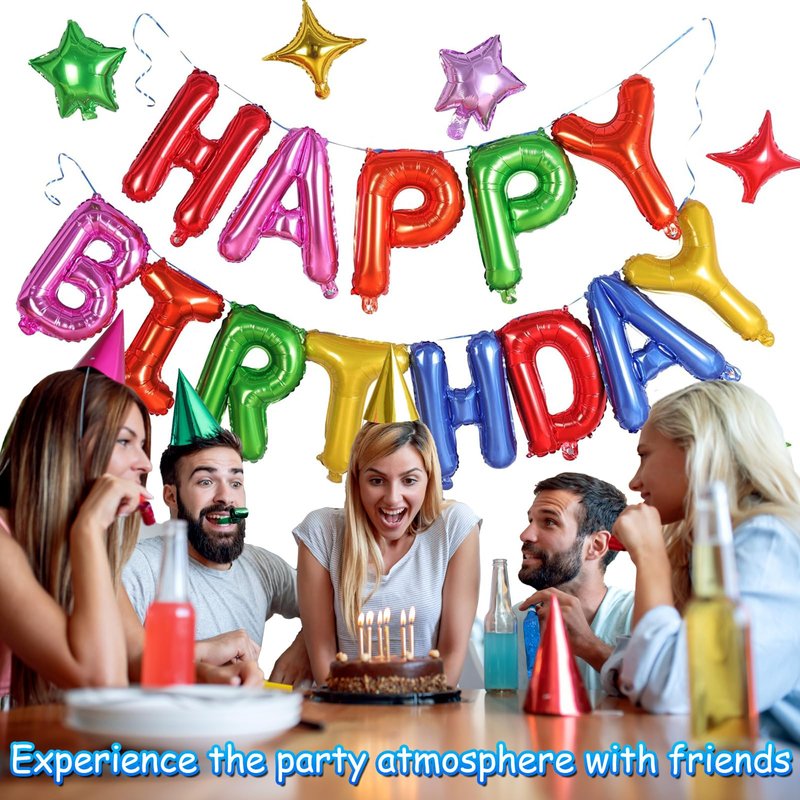 iPartycool Happy Birthday Balloon, 24pcs Birthday Decorations, Happy Birthday Banner, Birthday Party Decorations with 6pcs Star Balloons, Happy Birthday Sign for Kids Adults Birthday Party Supplies