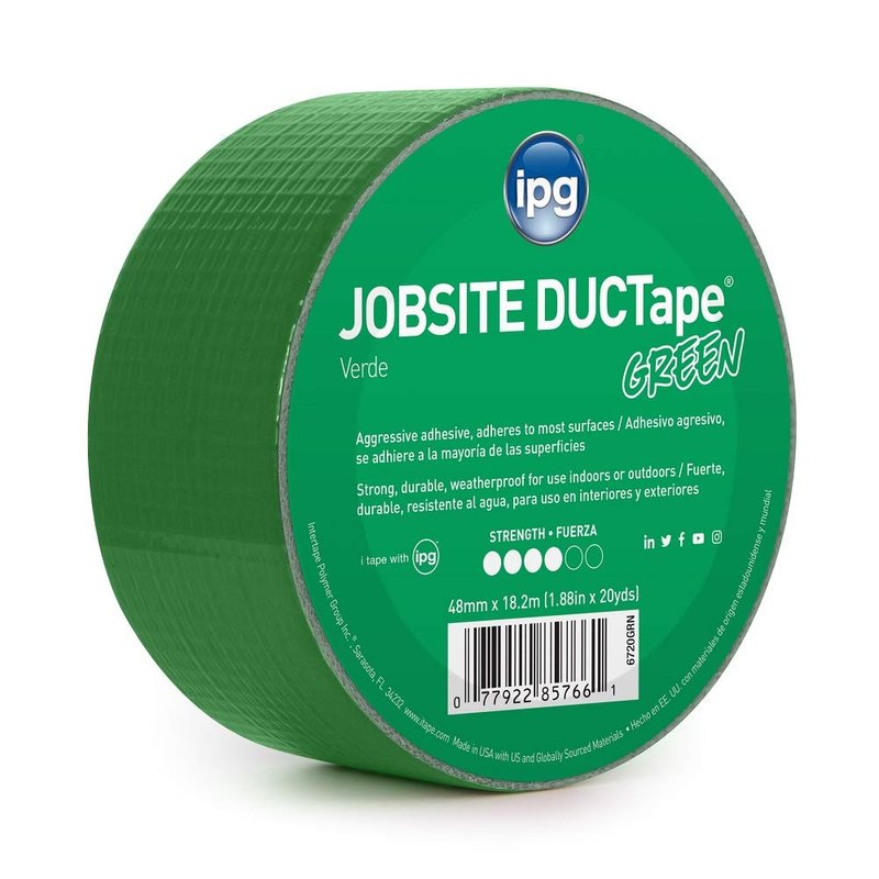 IPG 6720GRN JobSite DUCTape, Colored Duct Tape, 1.88" x 20 yd, Green (Single Roll)