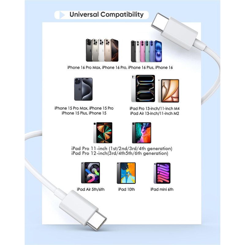- 【Universal Compatibility】USB C charging fast charger for iPhone 16/16 Plus/16 Pro/16 Pro Max/iPhone 15/15 Plus/15 Pro/15 Pro Max, iPad Pro 12.9 inch 6th/ 5th / 4th/ 3rd, iPad Pro 11 inch 4th/ 3rd/ 2nd/ 1st, iPad Air 5/4th, iPad Mini 6th, iPad 10th Generation; Google Pixel/LG and more USB-C enabled devices.