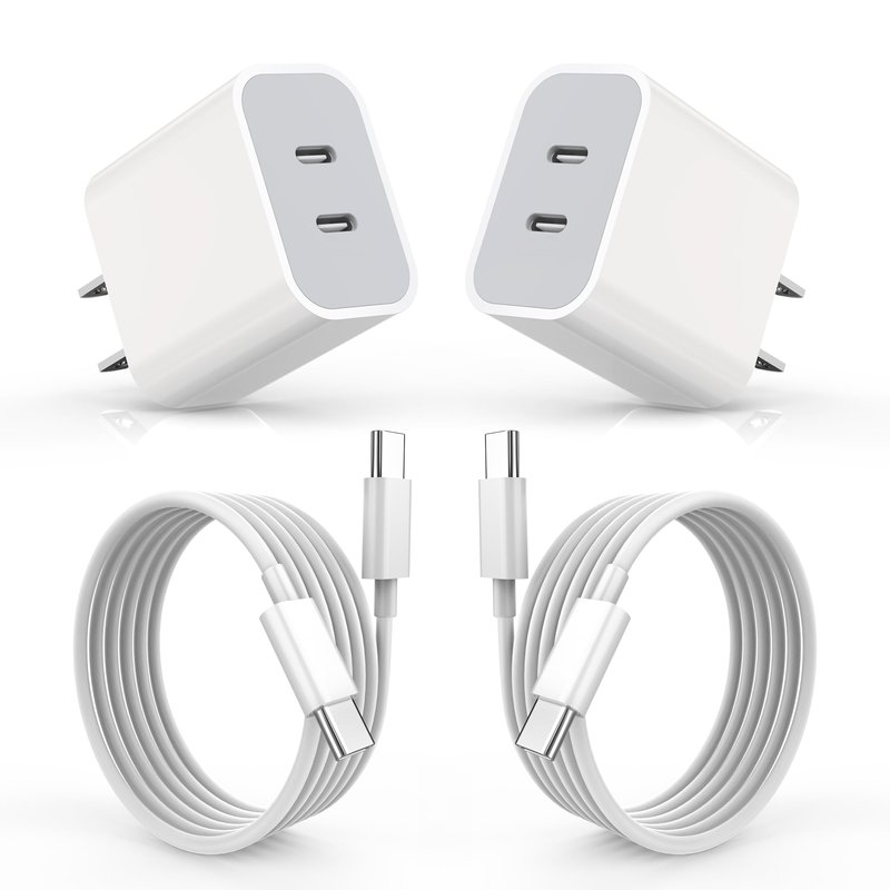 2 PACK Dual USB C Charging Block with 2 PACK USB C to USB C Charger Cable
