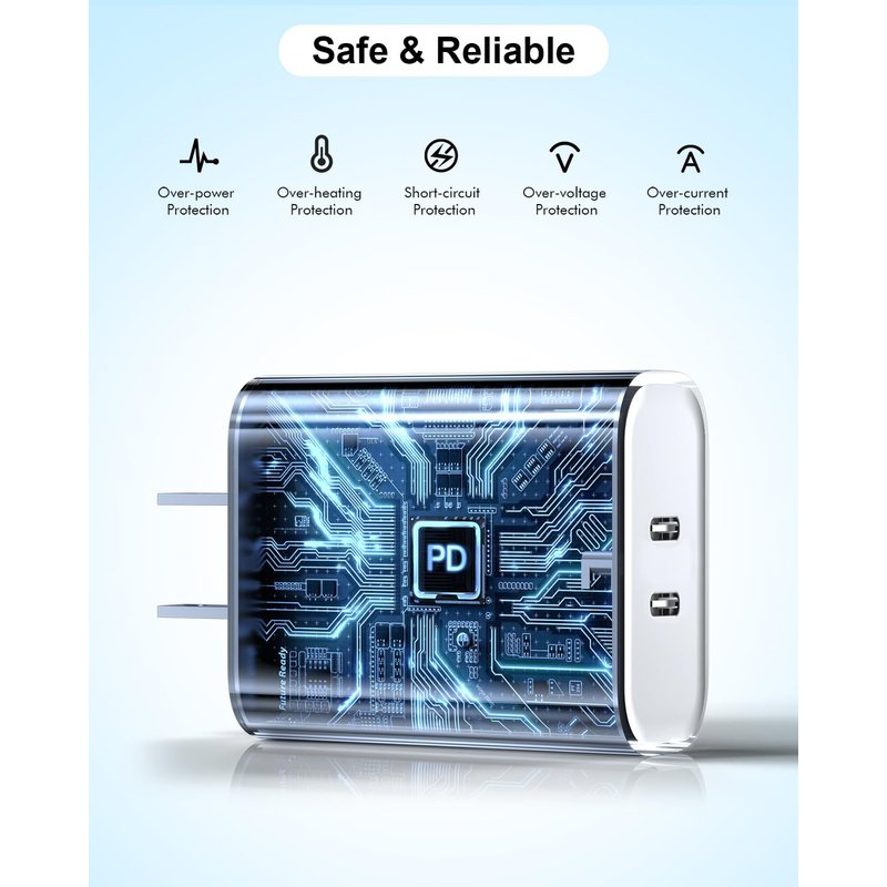 - 【Dual USB C Port Charger Block】Fast apple charger block equipped with double USB C port,Provide fast charging for both of your iPhone 16 and iPad simultaneously, saving waiting time and efficient charging. Small and delicate volume, reduce desktop space, first choice for travel, home and office.