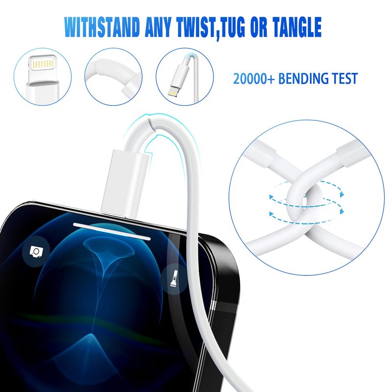 - 【Ultimate Durability】: iPhone Charger Designed and built with premium materials, it has been tested to withstand at least 15000 cycles of 95 degree bend and 10000 plugging and unplugging lifespan which is 12 times stronger than original device cables.