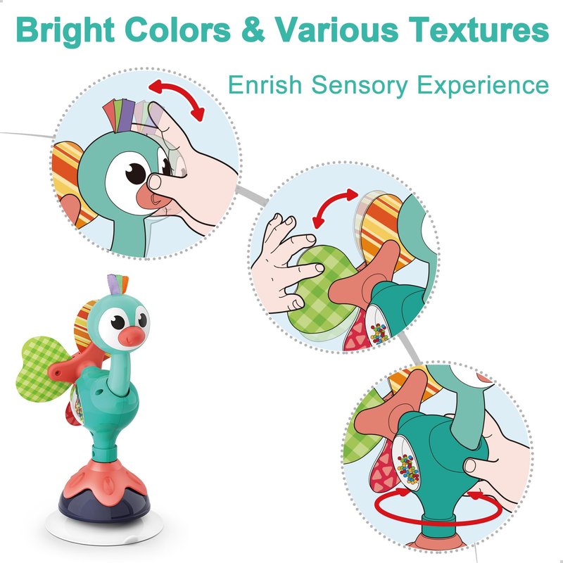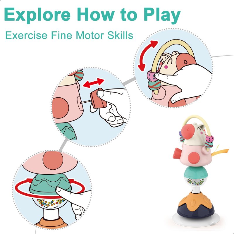 - ♪Suction Design♪ Strong suction base easily attaches to the high chair, table, tray, floor or any smooth surfaces for frustration-free play. Wetting the suction cup will help this toy stick much better.