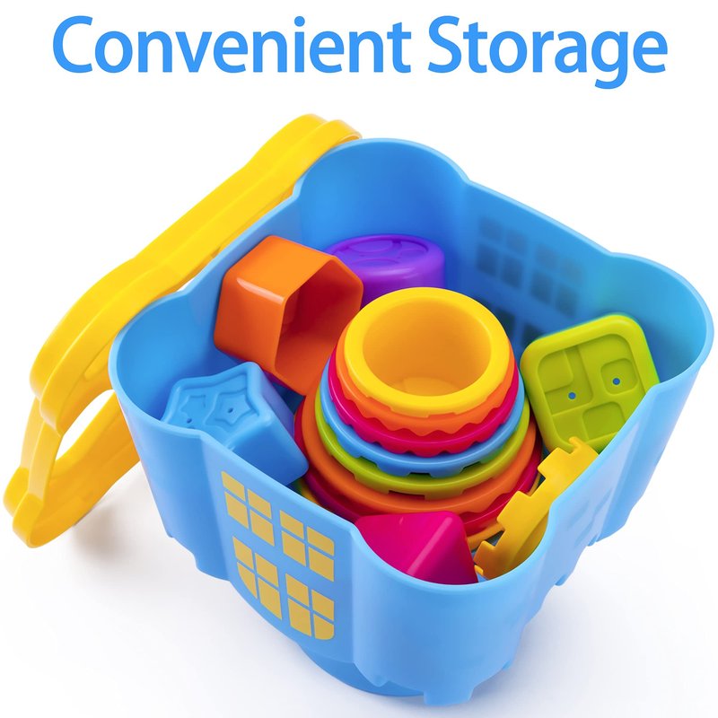 - 【Multiple Play Ways】18 pieces in total that can be play in many ways, such as stacking, nesting, shape sorting, color recognition, number learning, bath play, beach play and more.