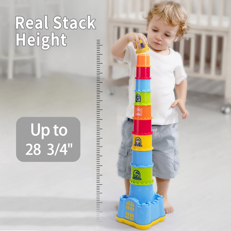 - 【Learning Skills】Your baby can stack and nest cups, identify colors, differentiate sizes, match shapes and study numbers. Playing develops kids' fine-motor skills, hand-eye coordination, and problem-solving skills.