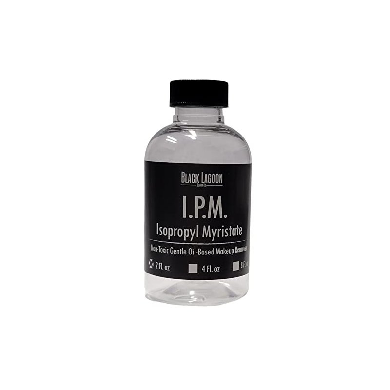Gentle make-up remover which removes many types of make-up including (pax) pros-aide and grease makeups. Can be used to clean airbrushes and is often used to thin silicone based airbrush makeup. Used in many OTC cosmetics and is considered to be an emollient that softens the skin. Counteracts the “oily” feel in some lotions. Absorbs quickly. Oil Soluble. Not Soluble in water. Removes Pros-aide and Pax Paint. Can be used to smooth Monster Clay and oil based clays. 100% Isopropyl Myristate.
