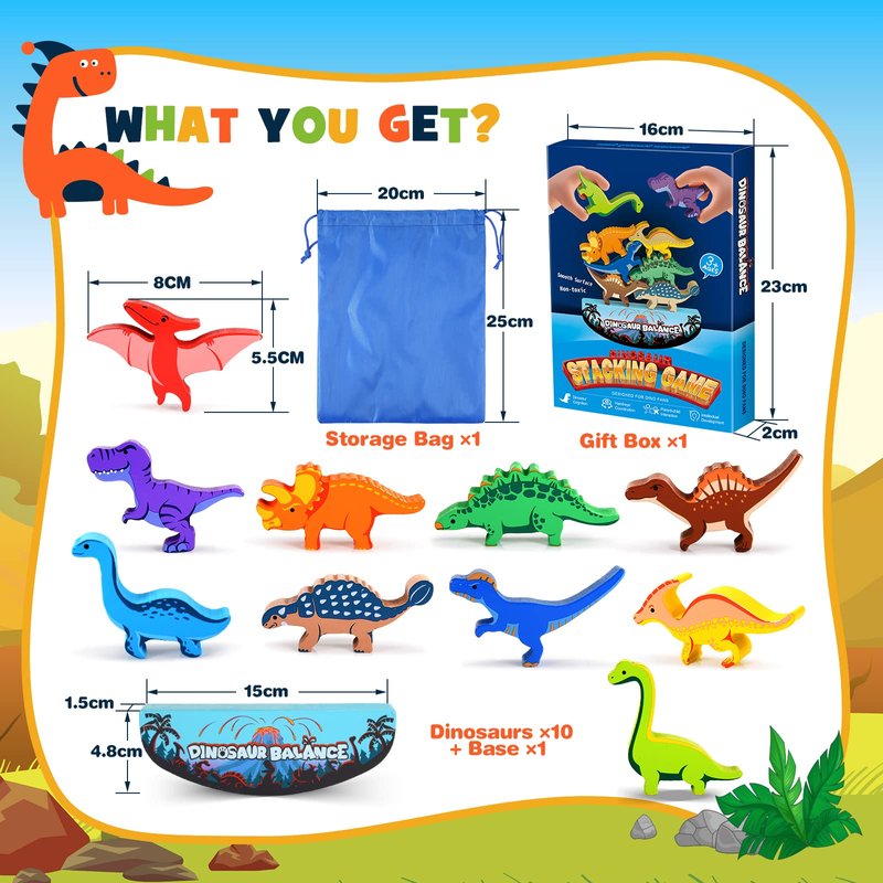 • Family party Game: The two set of dinosaur blocks support a balance competition game for kids and aldult, Let's see who can stack higher