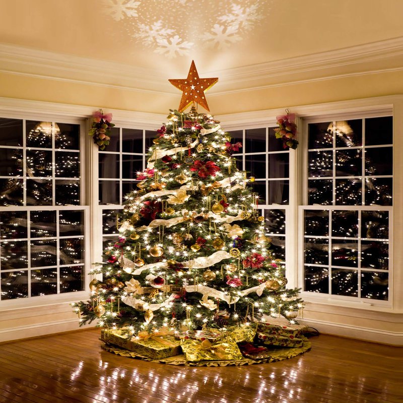 - 🎄LED Snowflake Projector Feature Adds Holiday Atmosphere - Built-in projector lamp inside, this star Christmas tree topper can project every clear snow flakes that move around on the ceiling. It will be the most unique decoration of this Christmas and a nice glittery addition to your Christmas tree.