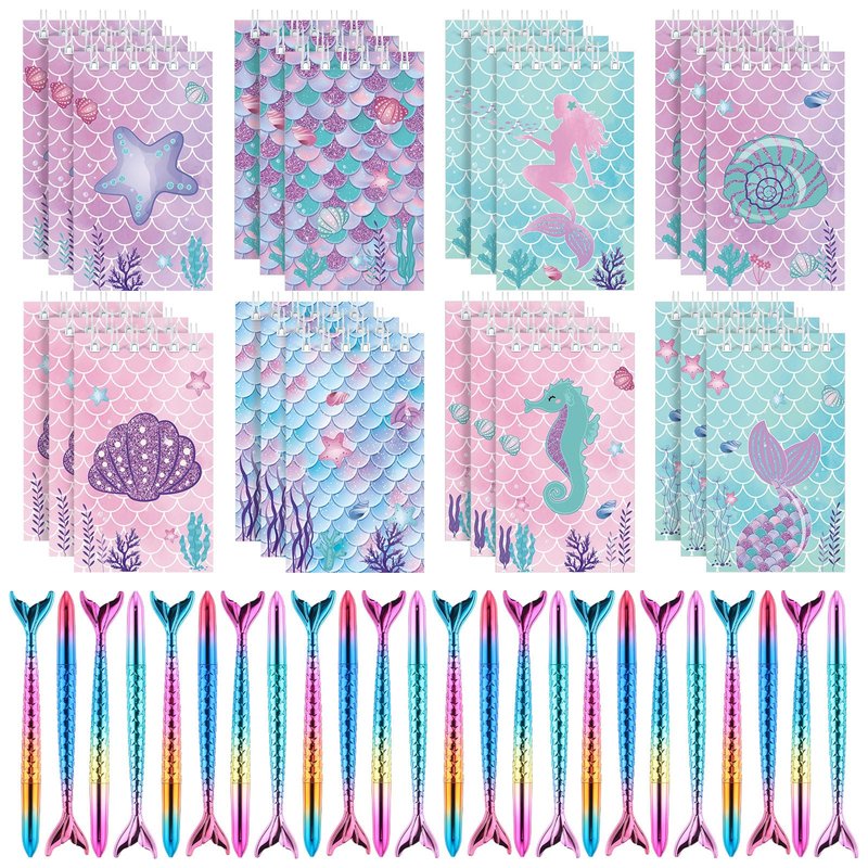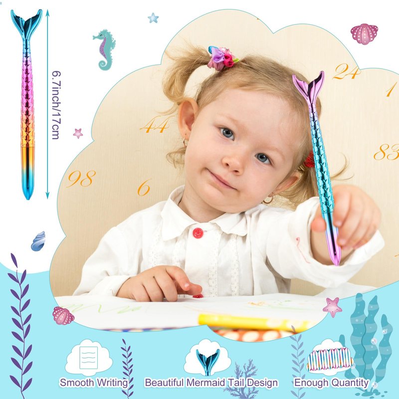 - Mermaid Stationery Set: the package include 24 pieces mermaid scale notepads and 24 pieces mermaid tail ballpoint pens which is beautiful and practical; Both boys and girls will like these mermaid party favors and give you their praise