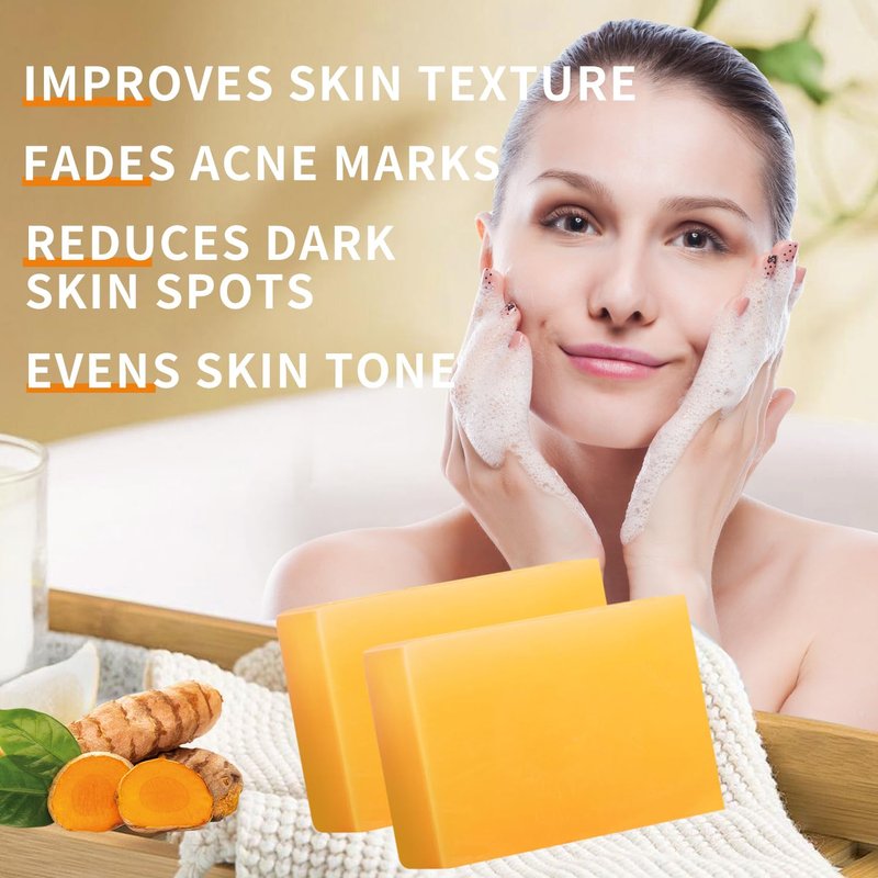 - Nourishing Ingredients: Infused with natural lemon and turmeric, this soap helps nourish your skin with each use. These ingredients work together to promote a healthy skin barrier and support your skin's natural vitality.The natural properties of turmeric also work to calm and soothe the skin.