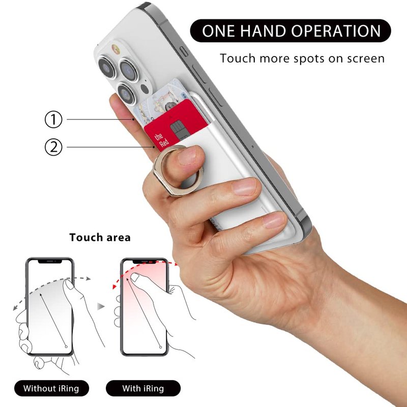 - AAUXX iRing pocket finger ring stand securely hold 2 cards along with your phone. Instead of bulky wallets, you can carry your frequently used IDs, credit cards, debit cards, and more. Smart and secure phone ring accessory works flawlessly for phone grip holder and wireless charging.