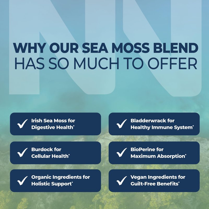- SEA MOSS COMPLEX: Nobi Nutrition’s Sea Moss capsules contain All-Organic varieties of Irish Sea Moss and Bladderwrack. Combined with Organic Burdock Root, they contain the most vital vitamins, minerals, and nutrients we need.*