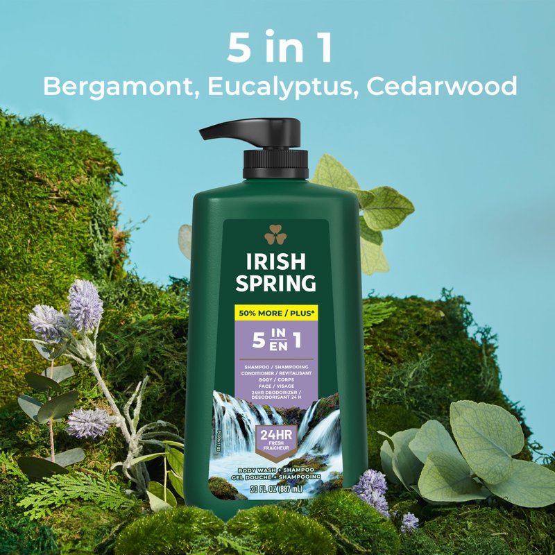 - Feel good while washing from head-to-toe with Irish Spring 5 in 1 Mens Body Wash