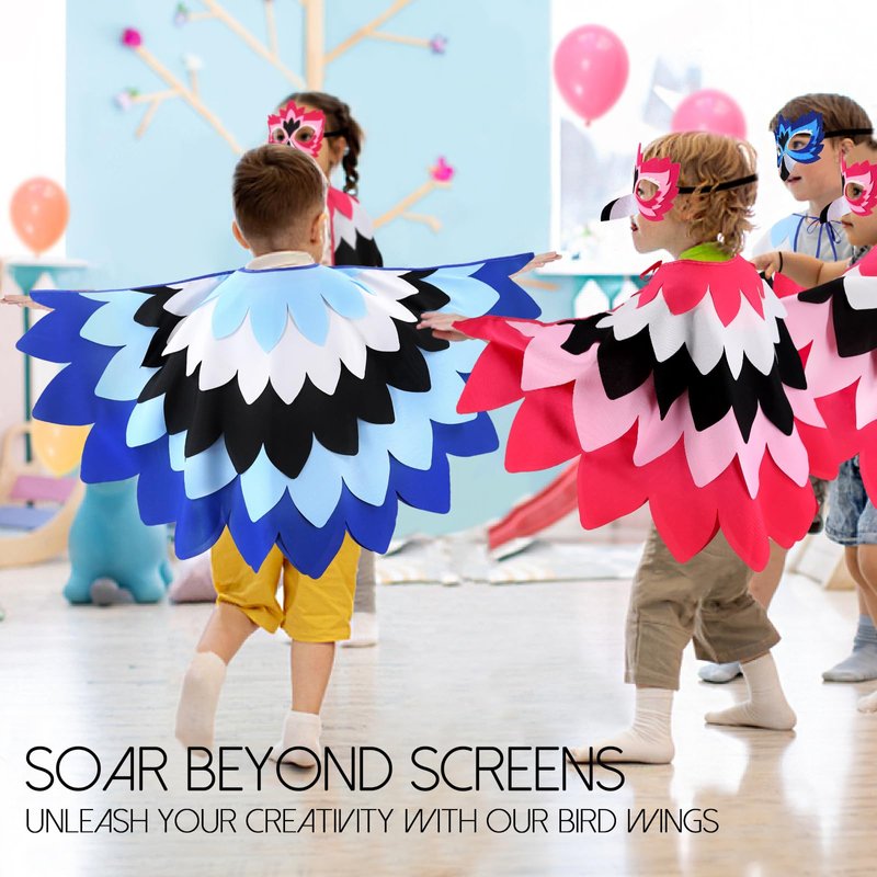- Screen-Free Fun: Let your child out of the TV room and come to the real world! Create an Excellent & Exciting story on-tale adventure with our bird wings and mask set, encourage creative and imaginative play in your children, and put big smiles on squishy little faces! Your lil bird will soar all day, while their imaginations blossom
