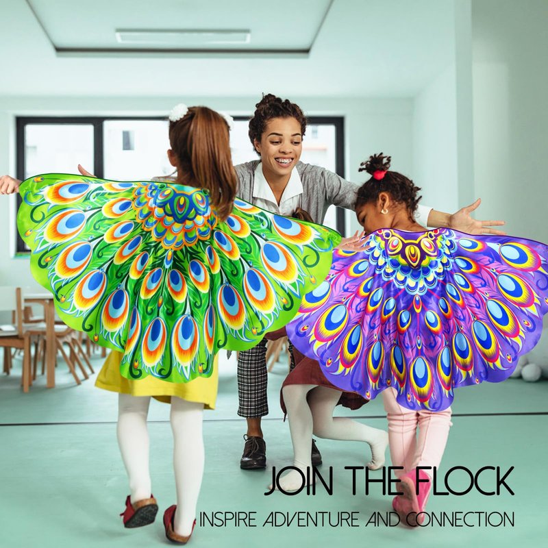 - PERFECT FOR ANYDAY: Bird wings costume for kids dress up as peacock owl parrot, will liven up Halloween cosplay, bird dress-up day, holiday parties, family gatherings, school performance, peacock Halloween costume, everyday whimsical pretend play, or make Christmas gift or new year party return gifts giving extra bright