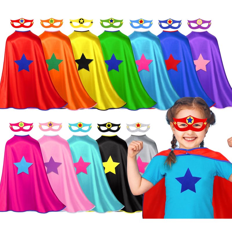 - 🌟➤【Overedging Operation and Eco-friendly Material】:★ Kids can play comfortably with our Eco-friendly satin superhero dress up capes. Bright, bold, and fun colors and is bound to long-term adventure. Superhero masks are soft felt to protect children's skin.