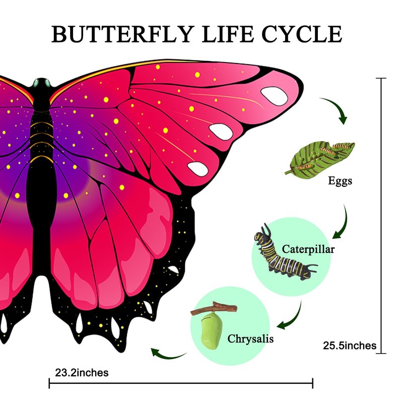 - Butterfly Wings: Wingspan, Lenght 25.5' Width 47.2'. Made of 100% durable stain;