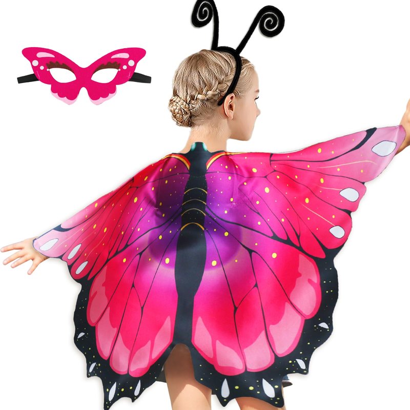 - SCREEN-FREE FUN - Let your child out of the TV room and come to the real world! Escape reality and frolic through fields of imagination and fun in this enchanting children butterfly costume set. Our butterfly cape, Butterfly Mask, and Butterfly Antenna Headband can also be worn outdoors as a daily accessory.