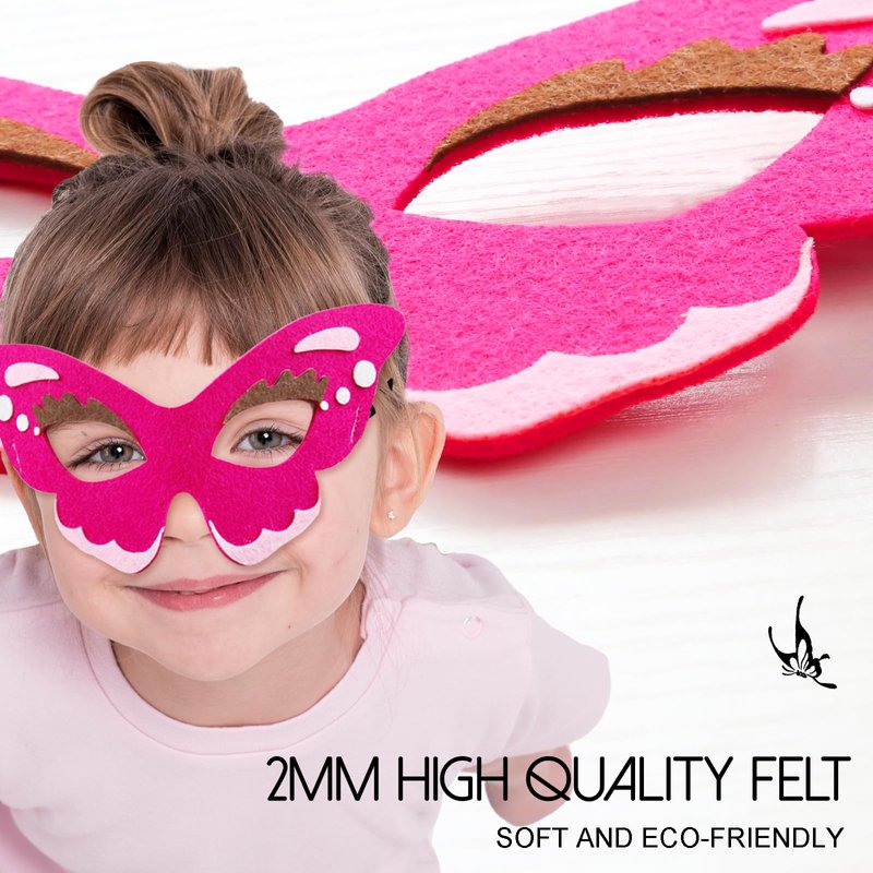 -Butterfly Mask, made of 100% high quality and soft felt. The elastic band can be adjusted to fit various size heads.