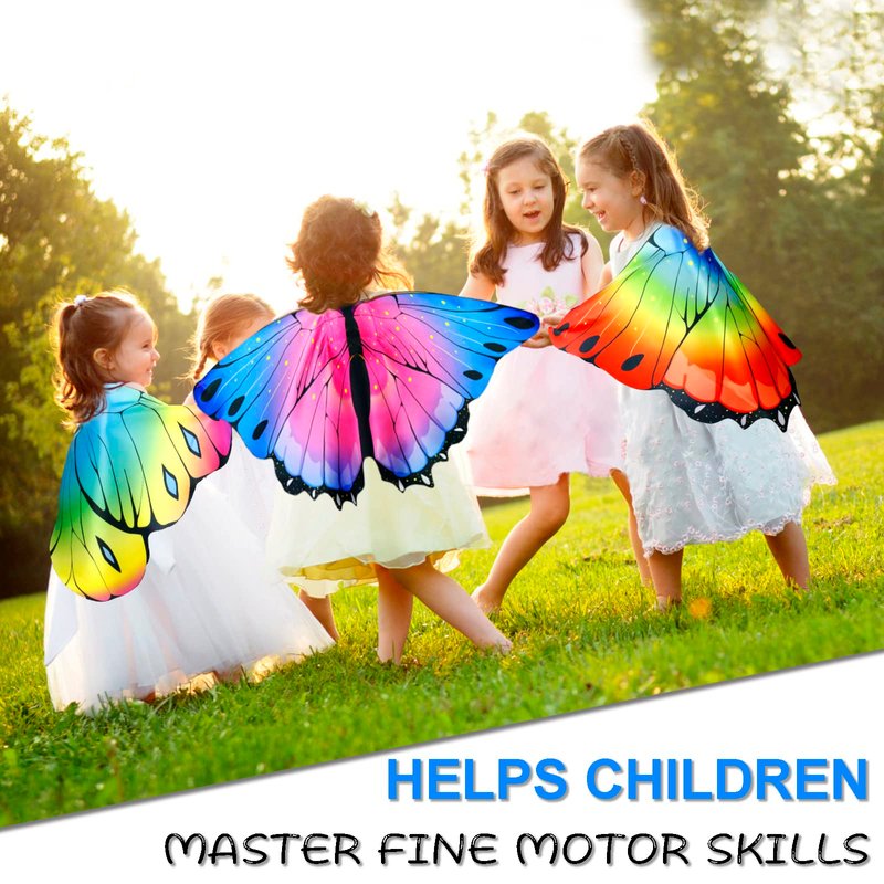 - BULK BUTTERFLY PARTY FAVORS:➤ Butterfly costume for toddler girls play set includes10* Kids Butterfly Wings; Beautiful butterfly wings for toddler girls, wingspan of 45inch, fit for most 3-8 years old girls boys, and the bright colors will make your little butterflies stand out as the center of attention in any events!