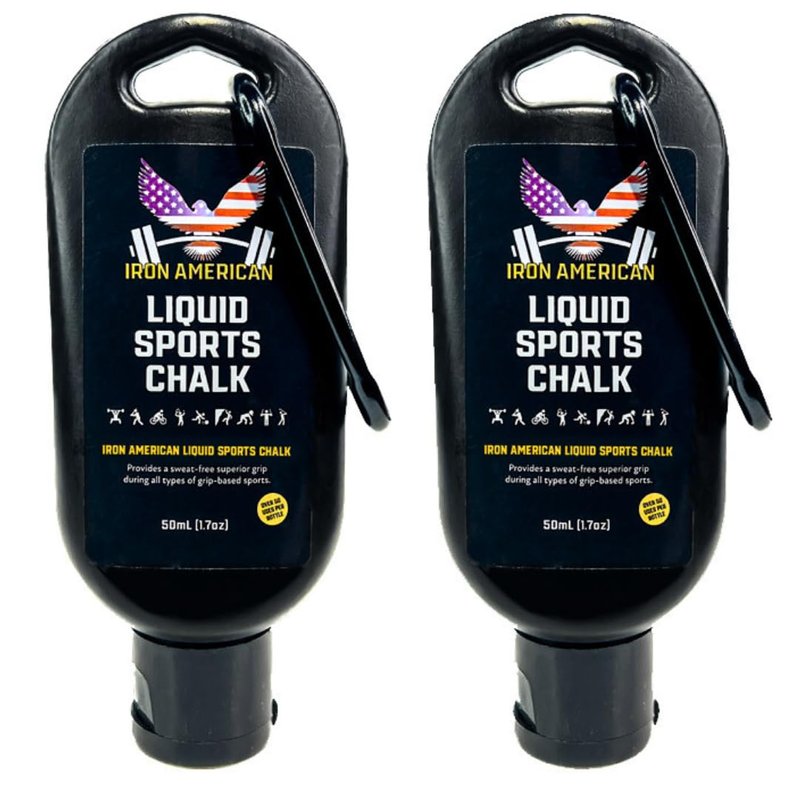 IRON AMERICAN Liquid Sports Chalk - Weightlifting Hand Chalk Travel Bottle Chalk Long Lasting Strong Grip for Training Gymnastics Rock Climbing (2-Pack (50 ml. Bottles)