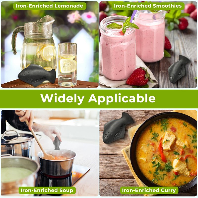 - 🐟 One Iron Fish, Endless Possibilities: From soups and stews to curries and stir-fries, this natural cooking tool can add a healthy dose of iron to all your favorite dishes. You can use it to make iron-infused drinking water, salads, juices, grains, oatmeal, or in cooking, increasing your iron intake naturally and safely every day!