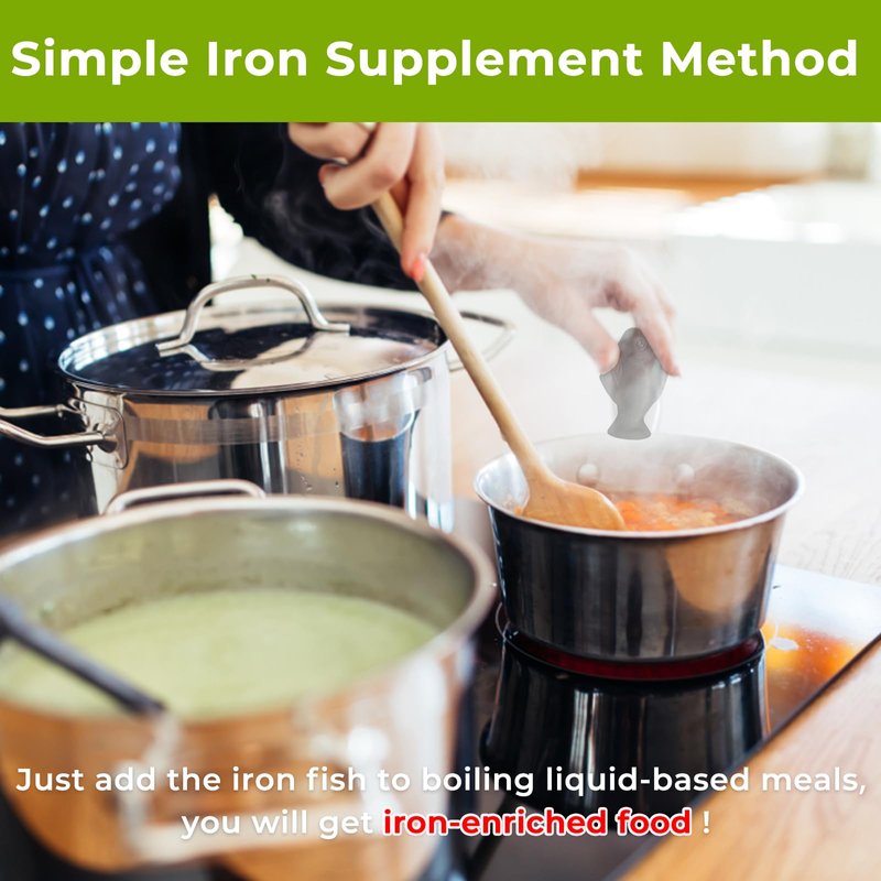 - 💖 A Natural Source of Iron: The Iron Fish is a simple, reusable, and effective cooking tool that adds extra iron to your daily foods or drinks. It is a natural alternative iron supplement that reduces the risk of iron deficiency. Perfect for everyone, especially anemic individuals, menstruating women, pregnant women, vegetarians, athletes.