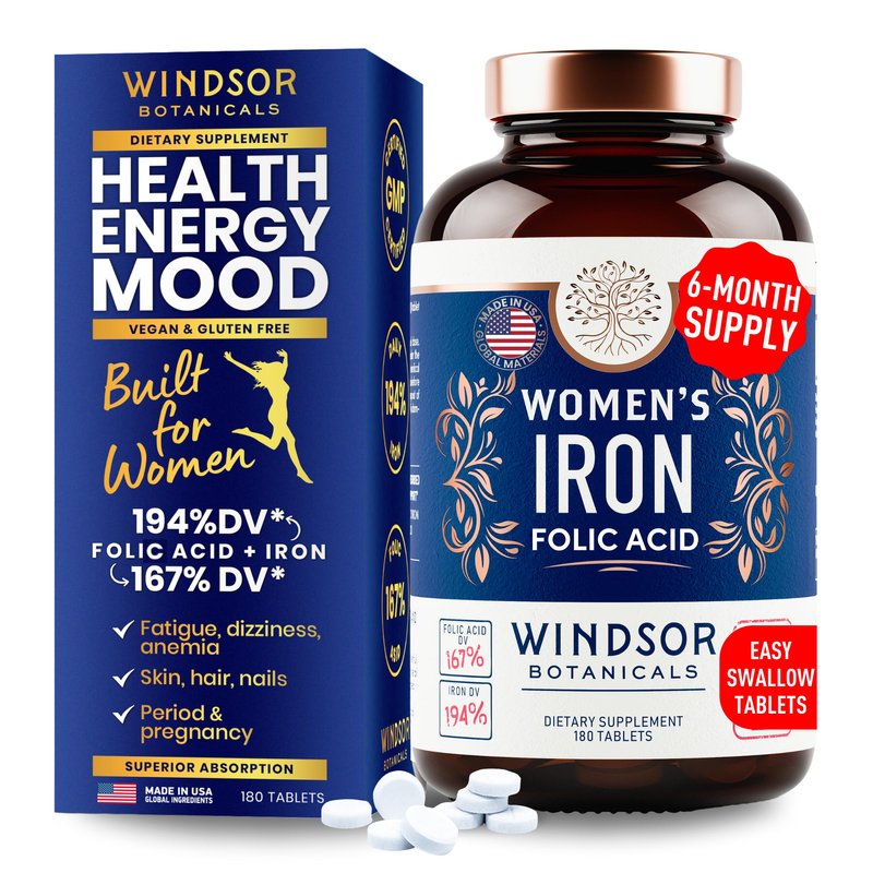 Iron Supplement for Women with Folic Acid - 6-Month Supply Iron Pills for Women . Iron supplements for anemia, Period, Pregnancy Support - Ferrous Sulfate, Folate Vitamin B9 - 180 Vegan Iron vitamins. Women’s-iron-+-Folic-Acid iron-supplement-for-women iron-supplement blood-builder-iron-supplement iron-pills-for-women iron-tablets iron-supplements-for-anemia