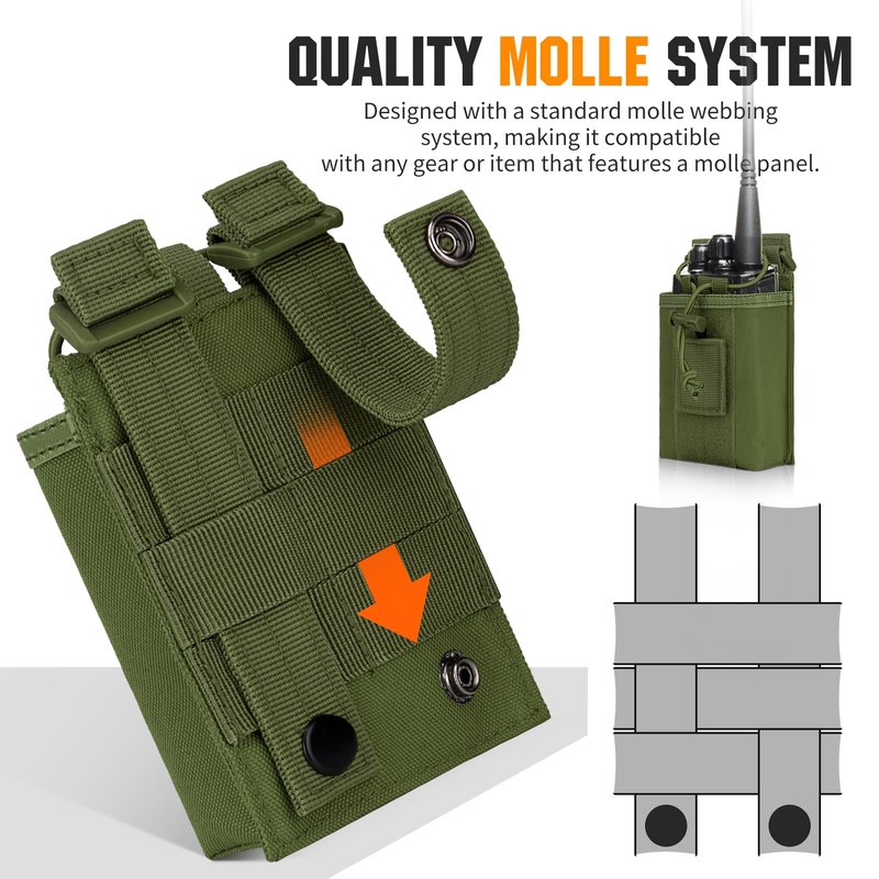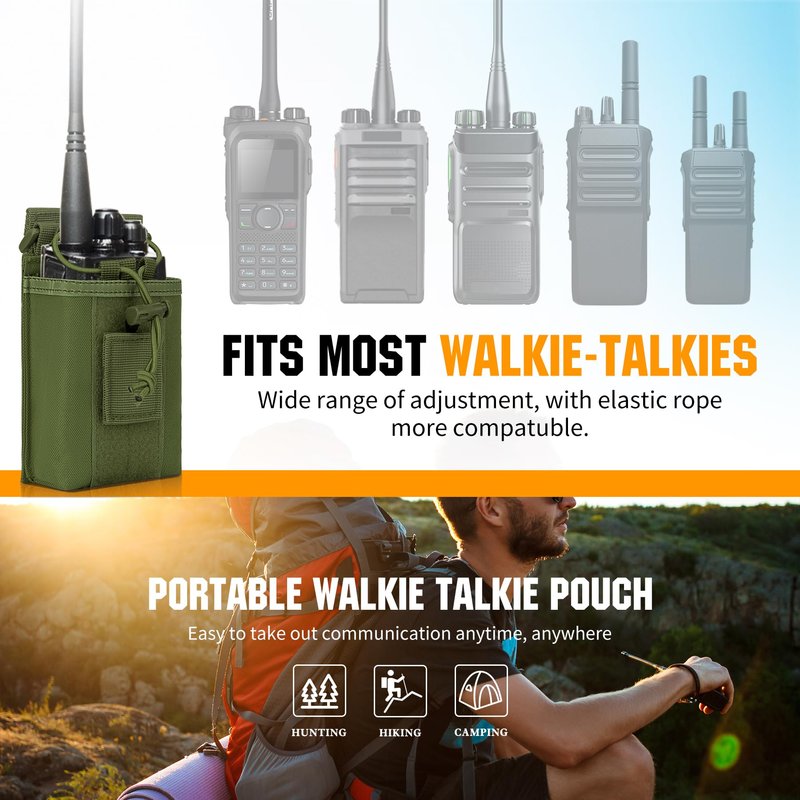- Adjustable Fastener Design: elastic cord and detachable tape loop to secure the radio inside the radio pouch. The detachable tape loop inside the bag can be adjusted to tighten the radio at different height.