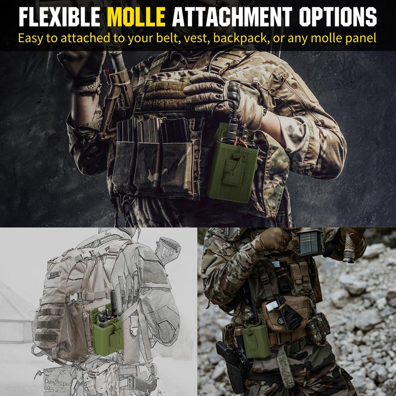 - Molle System: molle straps gives a lot of variety to attach on belt, vest, backpack and other molle compatible gears.