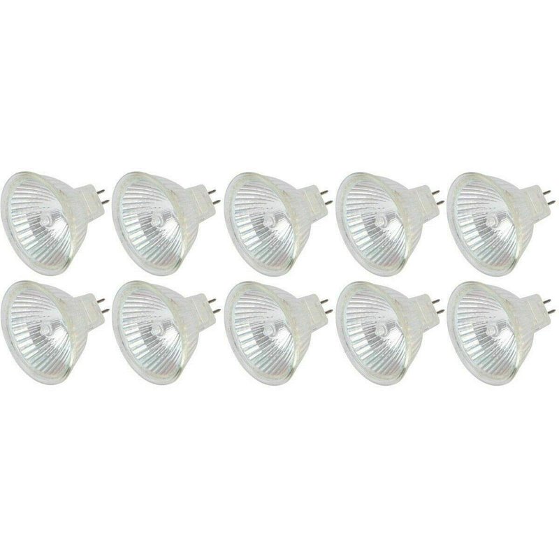 Ironsmith Lighting Products Gu 5.3 Halogen Flood Light Bulbs - Clear Glass Lens, Dimmable 2800K Warm White Light, 12 Volts 50 Watts Halogen Lamp, For Recessed & landscape Lighting - Pack of 10