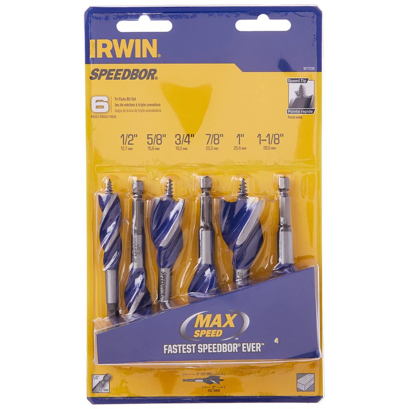 IRWIN SPEEDBOR Drill Bit Set for Wood, 4-Inch, 6-Piece (1877239)
