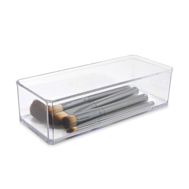 - HIGH QUALITY DESIGN: The multi-purpose clear, Lucite storage organizer is designed with a rectangular, stackable shape that fits into most drawers and can hold a multitude of small items. Each tray is light and sturdy with a see-through shine. The edges are angled for a comfortable grip and It won’t scratch surfaces when you place it around the home. The trays can be easily wiped clean with a cloth or paper towel [Inner Dimensions: 8.75" L x 3.3" W x 2.25" H]