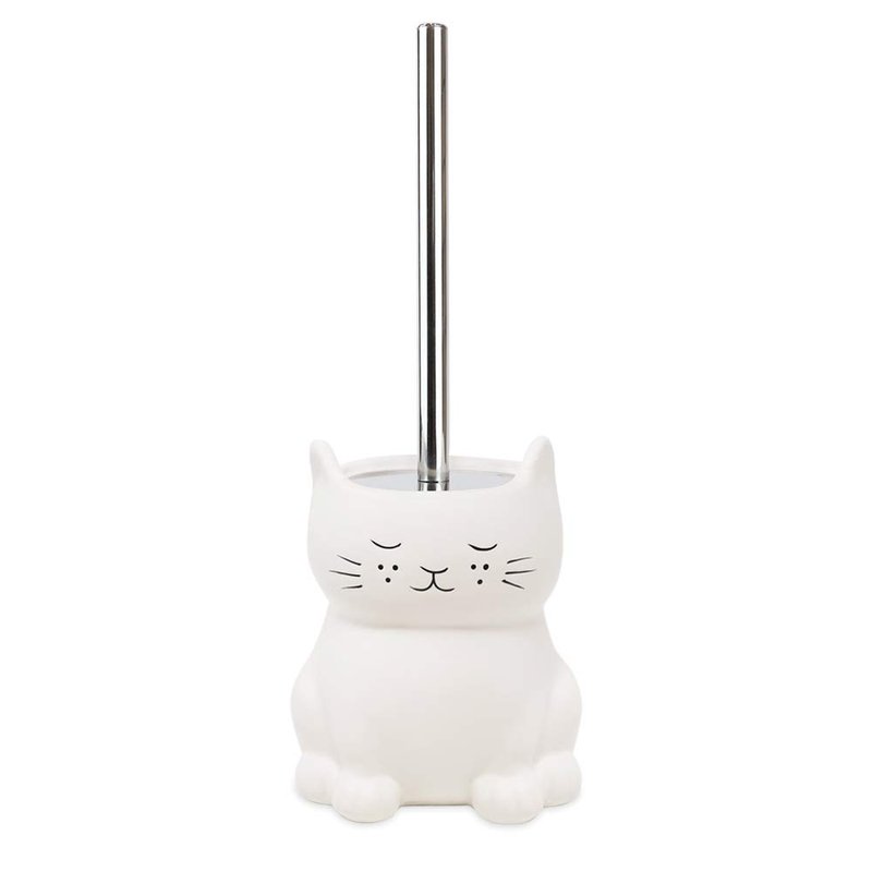 - 🐱 PRACTICAL: This ceramic toilet bowl brush holder is fitted with a sleek chrome bristled brush. The ceramic of a whimsical animal design conceals the brush when not in use, while also keeping your bathroom décor fun. Unique and functional, this will level up an ordinary bathroom design and give it some personality