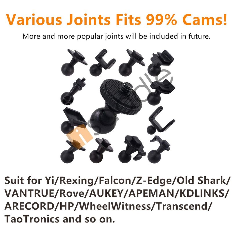 - SUIT FOR 99% CAMS! - Various Joints Fits 99% Dash Cams/Action Cams(For Yi/Rexing/Falcon/Z-Edge/Old Shark/VANTRUE/Rove/AUKEY/APEMAN/KDLINKS/ARECORD/HP/WheelWitness/Transcend/TaoTronics and so on).