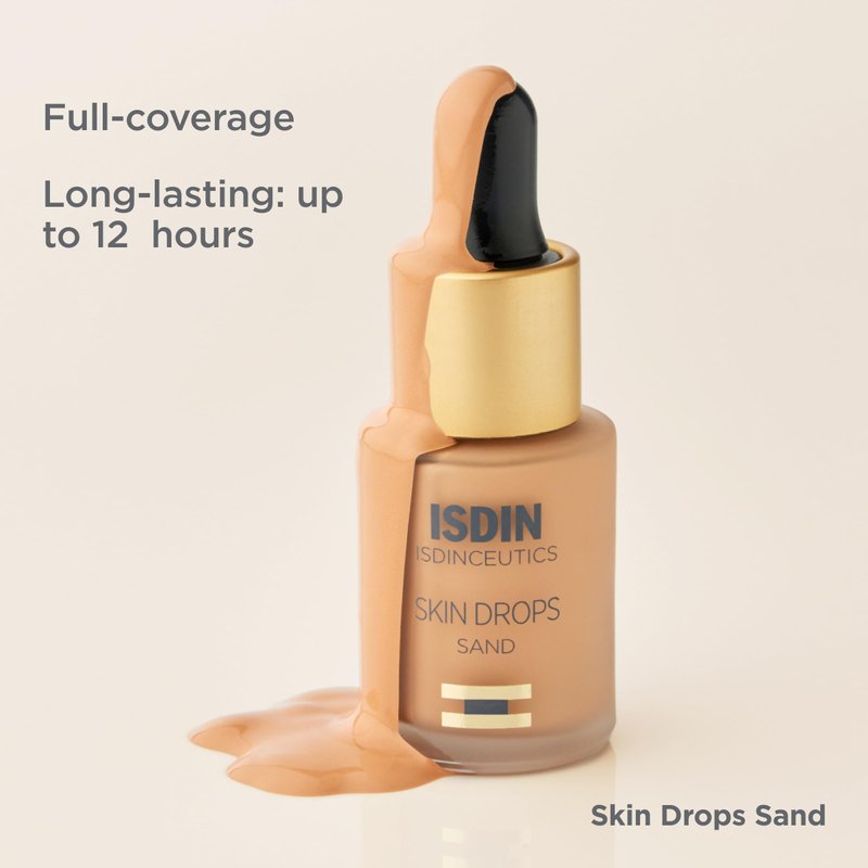 ISDIN Skin Drops, Face and Body Makeup Lightweight and High Coverage Foundation, Sand Shade for Fair to Light Skin Tone