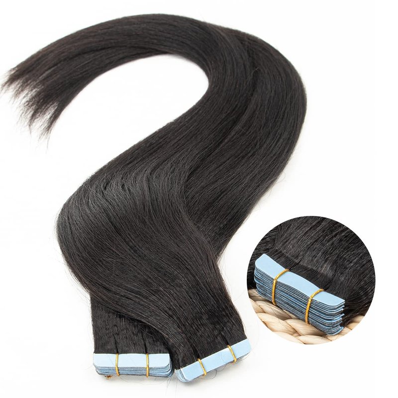 Isheeny Tape in Hair Extensions Human Hair Black Women Yaki Tape in Extensions Human Hair Light Yaki Straight Hair Extensions Real Human Hair Tape in Extensions 20 Inch 20 pieces 50g/set