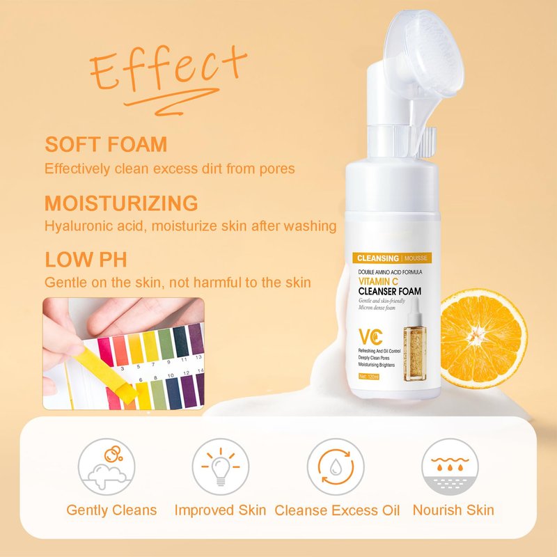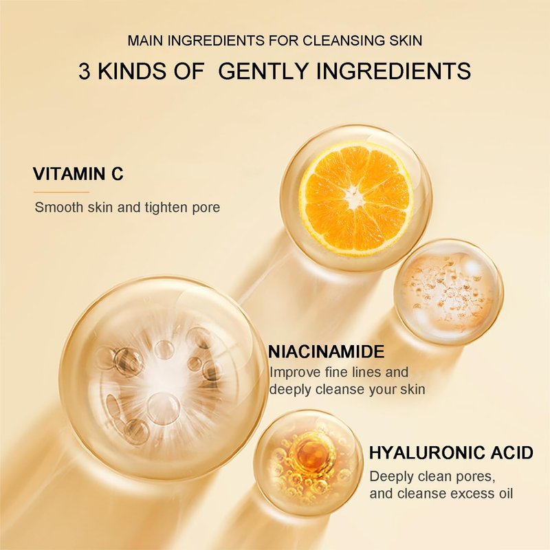 - GENTLE FOMING FACE CLEANSER - Our Vitamin C foaming facial cleanser is a mild foaming cleanser that contains vitamin C, hyaluronic acid, and helps to clean the face and pores without leaving oily residue