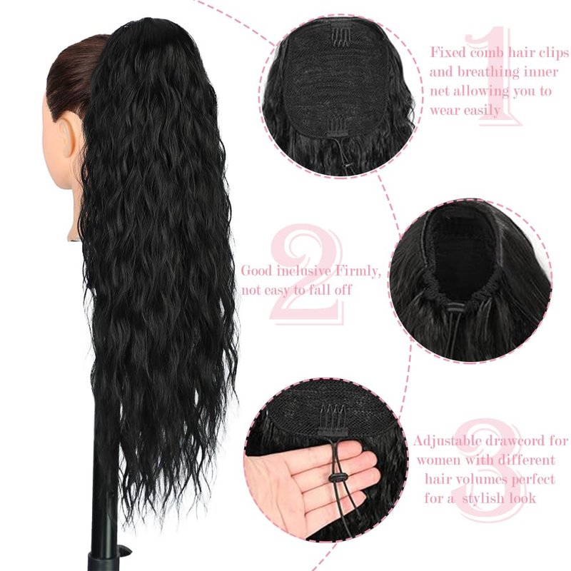- 【Drawstring Ponytail Material】: The Drawstring Ponytail is made of High-quality high-temperature synthetic silk that makes hair natural and durable, Easy and Quick to Apply, Textured Hairs that Blends Effortlessly, Long Lasting and Manageable, Easy Styling Instant Weave Curls Ponytails. and This ponytail adopts a comfortable and breathable inner net design and no irritation to the skin.