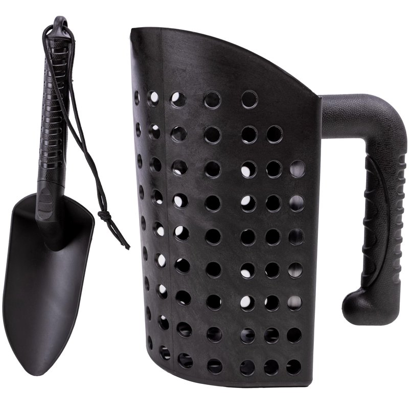 SET INCLUDES: 1 heavy-duty plastic sand scoop and trowel/shovel. Scoop is 7.75 inches tall and has a half-gallon capacity. Trowel is 11.5 inches long. GREAT FOR METAL DETECTING: The perfect accessory to your metal detecting arsenal. Quickly and easily sift through dirt, gravel, and sand to find historic artifacts, coins, jewelry, and other hidden treasures. TAKE TO THE BEACH: A must-have for kids and adults at the beach. Use your sand scoop and shovel to uncover shells, shark teeth, and other fossils lying beneath the sand. VERSATILE DIGGING TOOL: Our sand scoop and shovel are great for the outdoors, whether you love metal detecting, shelling at the beach, or digging for rocks in any terrain. MAKES A GREAT GIFT: For curious kids and adults alike.