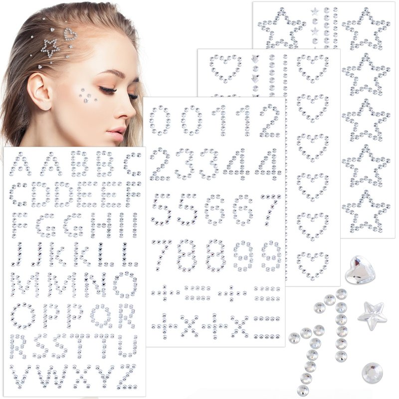 - Different styles: You will receive 4 acrylic rhinestone hair jewelry stickers, including: 1 small face jewel sticker, 1 letter face hair jewel sticker, 1 star face rhinestone sticker, 1 heart face hair jewelry sticker. Sufficient quantity, diverse shapes, to meet your multiple makeup styles.