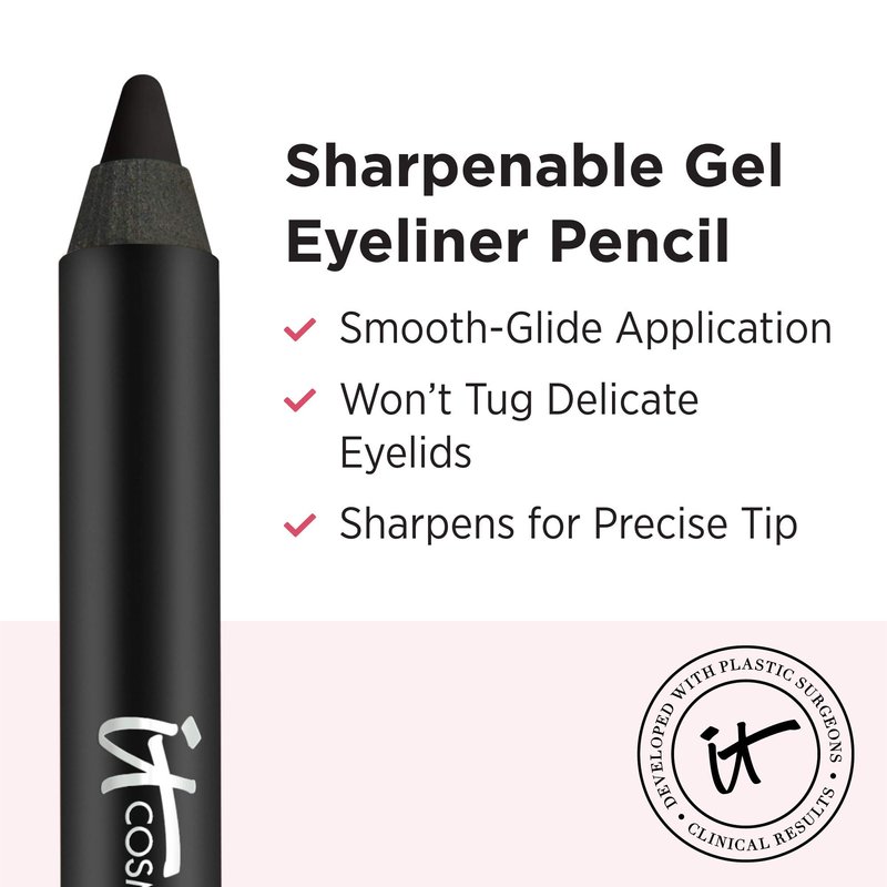 - ALL-DAY WEAR - Featuring technology exclusive to IT Cosmetics, this waterproof and sharpenable gel eyeliner pencil gives you super smooth glide, super pigment power, and super all-day wear.