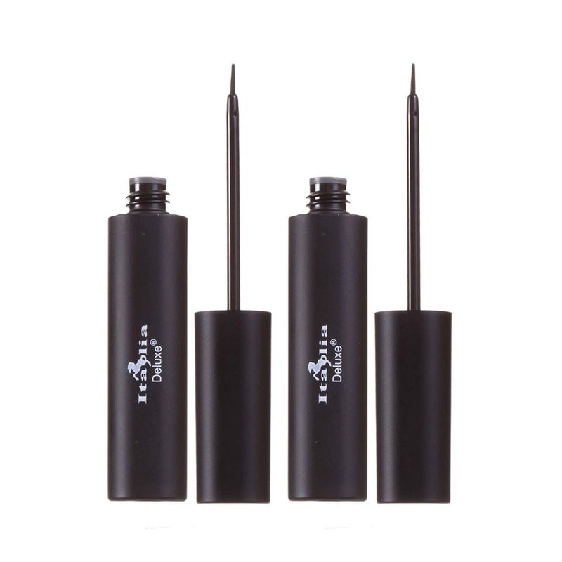 Italia-Deluxe Makeup 2pcs of Classic Liquid Eyeliner 201 Matte Black Eye Liner Vitamin E + ZipBag